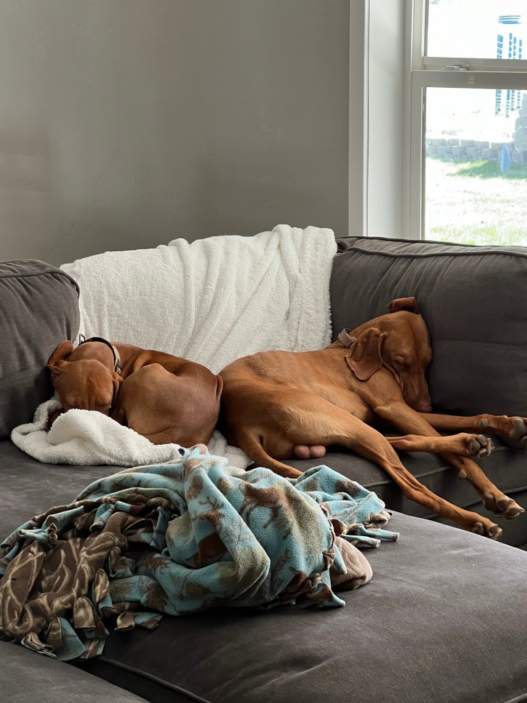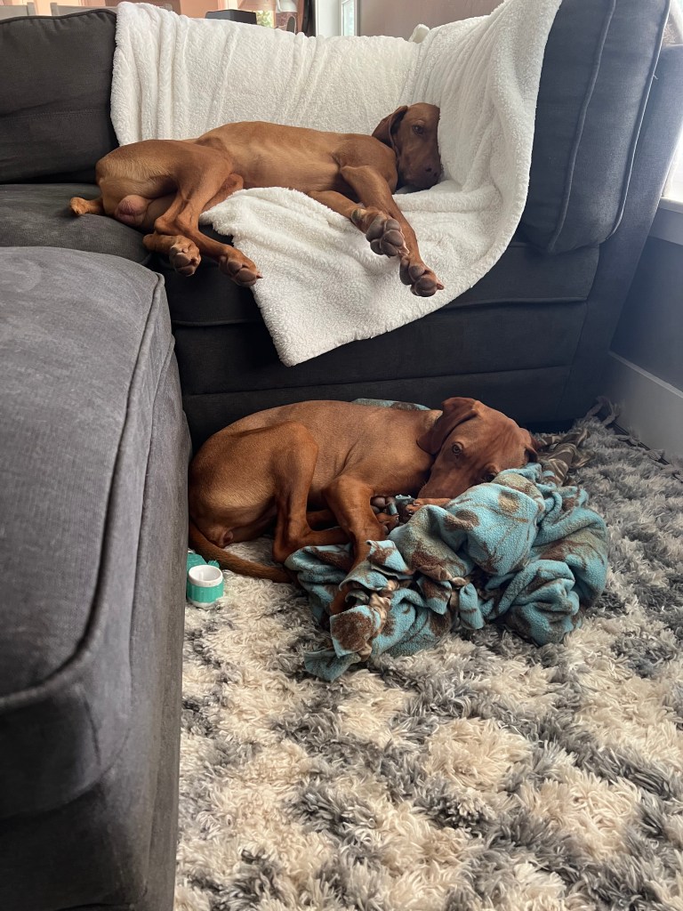 Both dogs are home with me now and have created their own little routine together while I’m working. Which mostly consists of lounging on the couch, out in the sun catching rays, and waiting for 3pm when my meetings are over and dad gets home. From then until bedtime, it’s a blur of copper running from one end of the property to the other